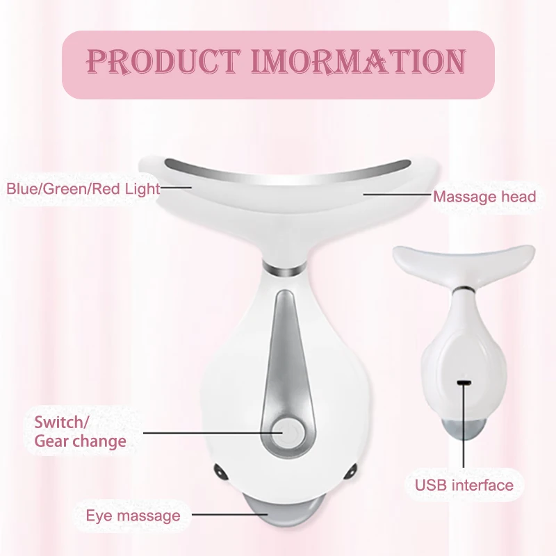 3 Colors LED Lighting Therapy Neck Photon Therapy Heating Anti-Wrinkle Removal RF Lifting Beauty Facial Neck Massager Double Chin Remove Face Massge Beauty